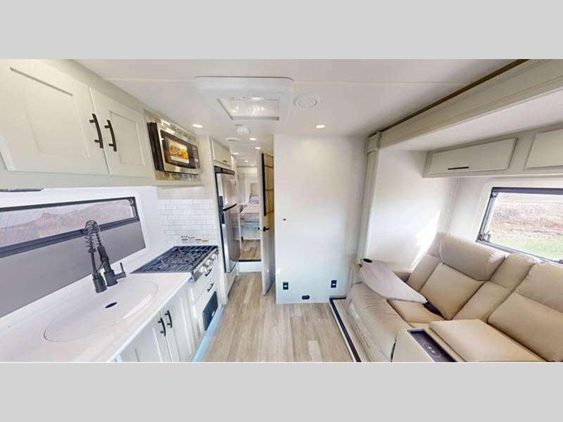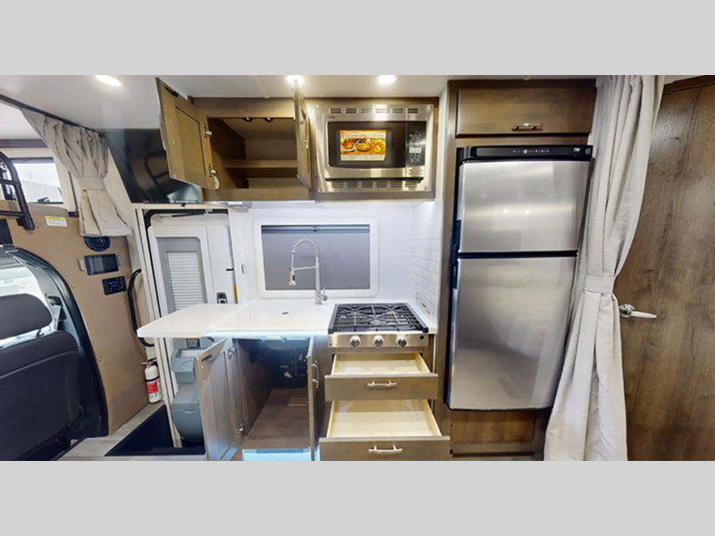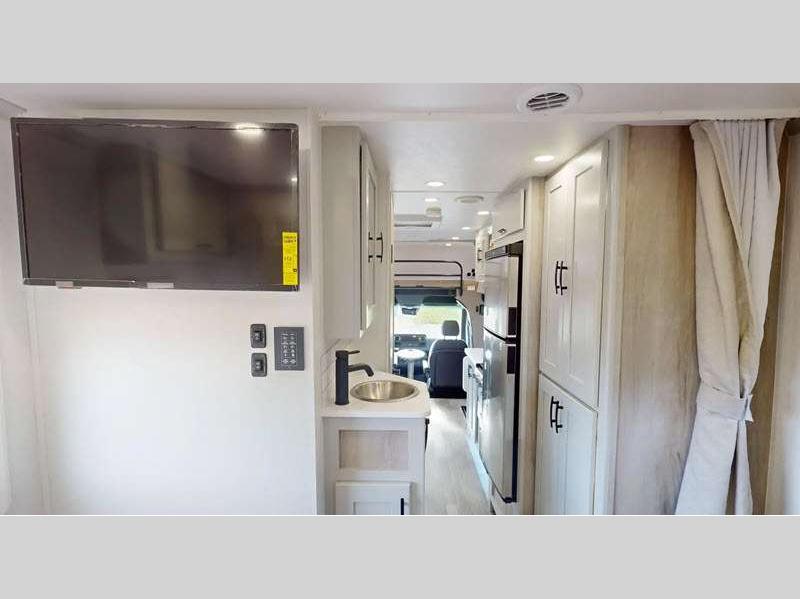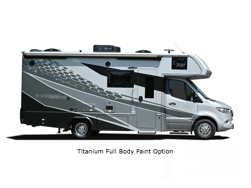 Sleeps 3 Slides 1 Length 24 ft 7 in Ext Width 7 ft 10 in Ext Height 11 ft 5 in Int Height 6 ft 9 in Interior Color Saddle, Milano II Exterior Color Full Body Paint; Magnetic, Varesine Blue, Titanium Hitch Weight 5000 lbs GVWR 11030 lbs Fresh Water Capacity 35 gals Grey Water Capacity 32 gals Black Water Capacity 32 gals Tire Size 16" Furnace BTU 20000 btu Generator Flex Power™ 4000i LP Fuel Type Diesel Engine 2.0L I-4 Chassis Mercedes Benz Sprinter Horsepower 208 hp Wheelbase 170 in Available Beds Queen Torque 332 ft-lb Refrigerator Type 12V Two Door Compressor Driven Refrigerator Size 8 cu ft Convection Cooking Yes Cooktop Burners 3 Number of Awnings 1 Axle Weight Front 4410 lbs Axle Weight Rear 7720 lbs LP Tank Capacity 20.3 gals Water Heater Type Truma Aqua Go Comfort On Demand AC BTU 15000 btu TV Info LR 32" LED Smart TV, BR 32" LED Smart TV Awning Info 16' Armless w/LED Lighting and Motion Activated Retraction Gross Combined Weight 15250 lbs Shower Type Standard Electrical Service 30 amp Similar Floorplans