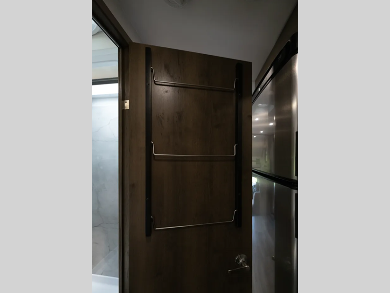 - Entry Door with Rotary Latch; Dark-Tinted, Frameless Window; and Integrated Shade